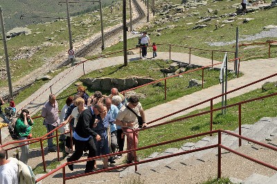 d'abord on descend (du train) puis on monte (les escaliers) : Philippe et
