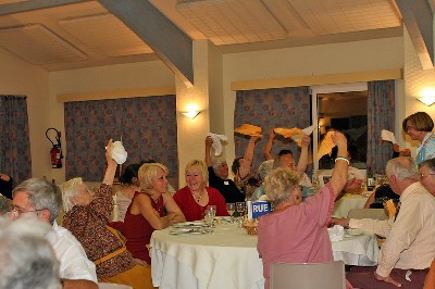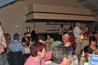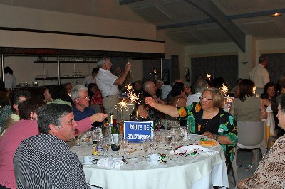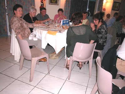 | Christiane et Raymond Vila, et à la table derrière, Paulette Dumas-Dossmann, Guy Olivès (de dos) et Sophie et Nadine Olivès |