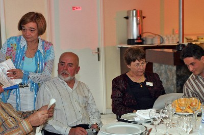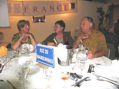 | A la table de la Rue du Valois, Arlette Schneider, Édouard Adreit, Viviane Détrez-Zimini, Norbert et Danielle Détrez-Parrot | Hélène et Charles Goujon, Arlette Schneider, Viviane Détrez-Zimini, Norbert et Danielle Détrez-Parrot. Au premier plan Suzanne Vila-Marco et, au fond, Bernard Adreit | ||||||