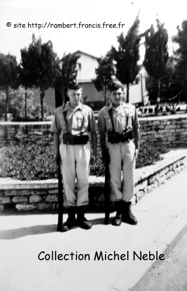 | Michel Neble (à droite) et son ami Jean-Claude Jonchère (à gauche) à Ben Aknoun à l'issue du défilé du 14 juillet 1954 |