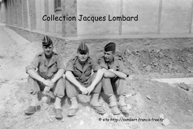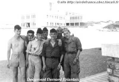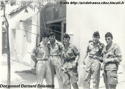 | Groupe de la section "dépanneur et opérateur téléimprimeur" avec Margail, Jean Renaudin, Hatali, Bertil, Jean-Louis Bougoin et Rochetau | Alain Carnain, Jean Renaudin et Rochetau, en balade à Alger, boulevard Carnot, près du square Bresson, face au port, près de l'ascenseur desservant la gare en contrebas |