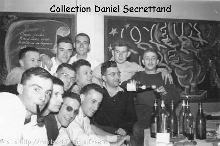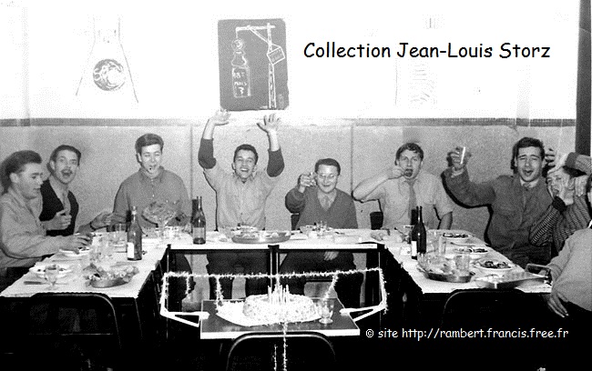 | Le Noël 1958 de quelques EOR du Peloton 901 | Des sous-lieutenants autour d'un verre (d'eau ?) |