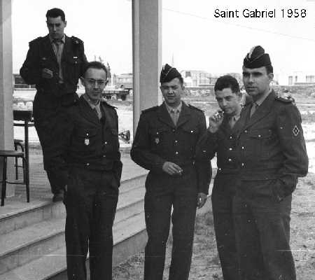 | Toujours en 1958 ? lors de la Saint Gabriel ? patron des transmetteurs : Anton, Ballereau, Jacques Varlot, X (secrétaire du Cdt Kay) et Maurice Adam (du 7ème RTA). | |