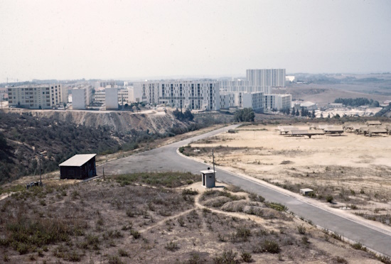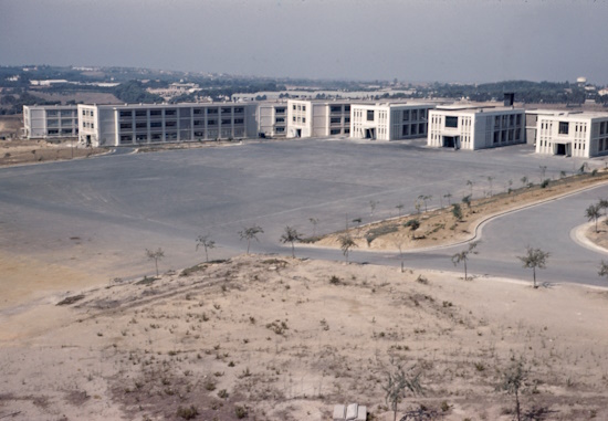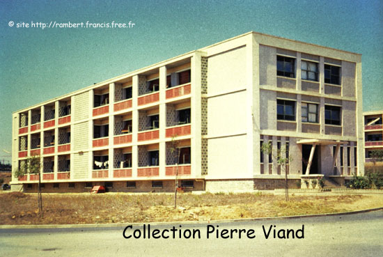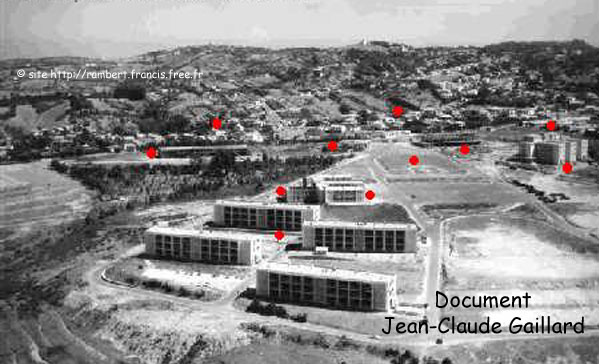 | Photo est prise des toits-terrasses du bâtiment "Technique" en direction des immeubles civils de la Cité Fougeroux construits en 1957 ou 1958, situés derrière "La Côte d'Or | L'arrière du domaine de l'EMAT/AFN avec vue sur la Cité Fougeroux et la Cité de la Police |