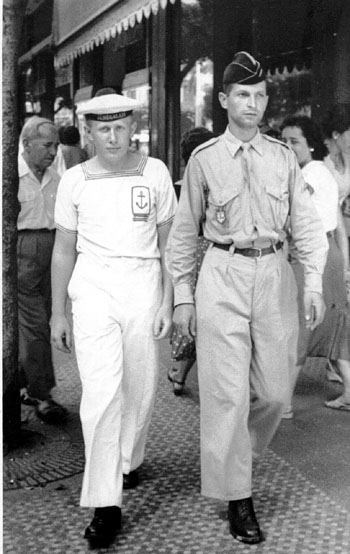 | En 1956, Jean Braun devant le Poste de Police | En 1956,dans les rues d'Alger Jean Braun et le quartier-maître Raymond Schaefer |