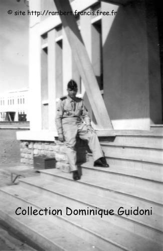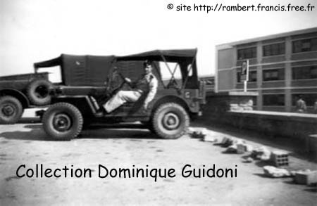 ![]() Dominique Guidoni en Jeep devant le bâtiment T1 |