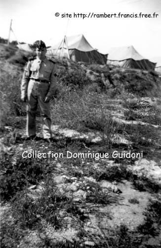 ![]() Dominique Guidoni devant les tentes des stagiaires des autres armes |