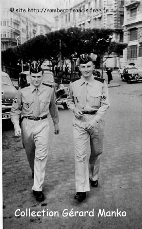 ![]() En 1955, Gérard Manka et Jean Dittmar à Alger au bas de la rue Dumont d'Urville, près du square Bresson et de l'Opéra |