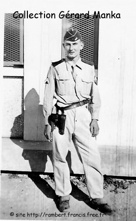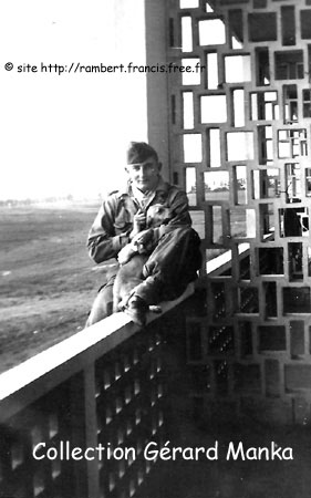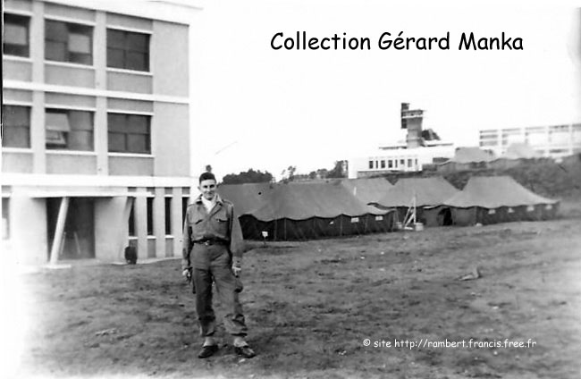 ![]() Gérard Maka devant le camp de toile des appelés stagiaires |