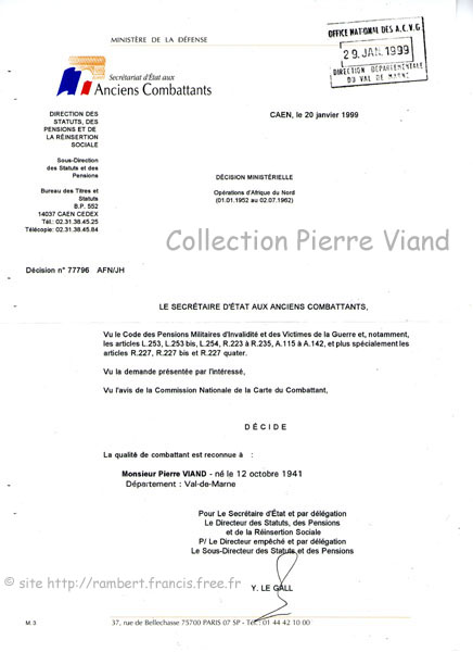 Les souvenirs, les photos et les documents de Pierre VIAND |