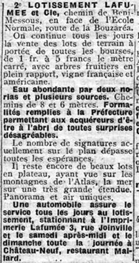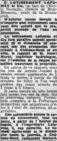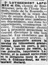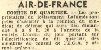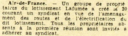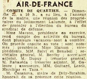 du Lotissement Lafumée et composition du bureau (Echo d'Alger du 27 octobre 1949) |