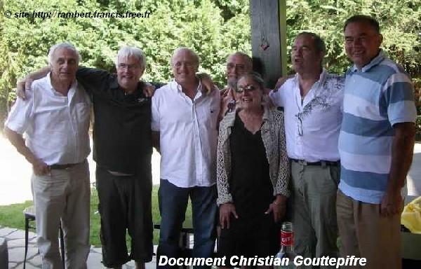 Après la remise dune plaque en lhonneur de Gaby Borras offerte par ses amis denfance, qui fut un moment dintense émotion, latmosphère se détendit rapidement grâce aux anisettes, entre autres, et aux nombreuses kémias. Puis nous dégustâmes une succulente paella concoctée par Dédé. Les souvenirs fusèrent avec moult photos et documents divers. Il fut beaucoup question de lÉcole St-Joseph. Un journal écrit à lépoque par lun dentre nous relata nos différents faits darmes, que ce soit nos courses de vélo, nos matchs de foot et de rugby, nos courses de carrioles, nos concours de pronostics sur les résultats des courses cyclistes de lépoque (pronostics auxquels plus de 25 amis avaient participé de 1958 à 1960). Ce journal ne parlait pas des expériences vécues par nombre dentre nous avec la renommée Z.....a. Mais il y a prescription et certains nhésitèrent pas à nous les rappeler. Les vins, champagne et jen passe avaient été offerts par Jean-Paul Alfonsi. La journée a passé sans que nous nous en rendions compte et sans un seul blanc. On sait que les Pieds-Noirs sont plutôt bavards. Le soir après lapéro, ce fut une soirée «plancha» très sympathique. La fraîcheur nous contraignit à rentrer prendre un dernier café à lintérieur. Les rappels du passé laissèrent la place à 3 conteurs assez doués pour des histoires que comme dirait Brassens «ma mère minterdit de nommer ici». Le lendemain, les mêmes, sauf Jean-Claude Rochelle et Mireille et Martine Caballero (cause travail), se sont retrouvés à «la Maison de lÉtang Blanc» à Seignosse pour un repas très convivial, dans un endroit fort agréable, et au cours du quel les souvenirs continuèrent daffluer. Enfin le mercredi, Françoise Daninos-Perissat et Daniel étant repartis, les 4 du Parc de Miremont se réunirent une dernière fois avec leurs épouses pour un apéritif dînatoire à Anglet. Il fut décidé que nous essayerons de nous retrouver en 2008, sans doute en Touraine, près des Châteaux de la Loire. Nous serons peut-être plus nombreux car chacun dentre nous aura à cur de rameuter dautres amis qui navaient pas pu être présents cette fois-ci. Les Participants : Parc de Miremont : Alfonsi Jean-Paul et Maïté, Borras André et Félicie, Daninos-Perissat Françoise et Daniel, Furchmuller Claude et Marie-Thérèse, Gouttepifre Christian et Monîc Cité de la Police : Rochelle Jean-Claude et Mireille Alger : Caballero Pierre et Martine (El-Biar), Maionne Michel et Bernadette (Bd Bru), Péri Jacques et Josette(Mascaro) (Ruisseau), Péri Marc et Marie-Claude (Ruisseau) Si vous aussi, vous organisez le même type de petite rencontre, à 3, 4, 5 ou plus, vos photos et vos commentaires pourront trouver naturellement leur place dans cette nouvelle rubrique. |