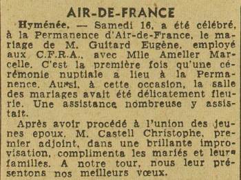 du mariage d'Eugène Guitard (oncle de Margaret) Echo d'Alger du 17 octobre 1948 |