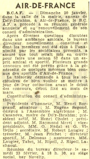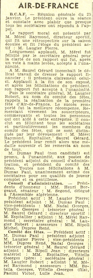 : directeur sportif : M. Espitallier ; adjoint : M. Merel Raymond