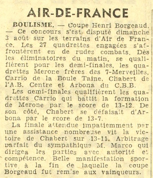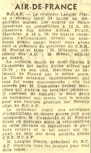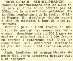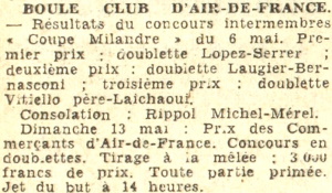 25 mai, concours en doublettes choisies, doté de deux bouteilles