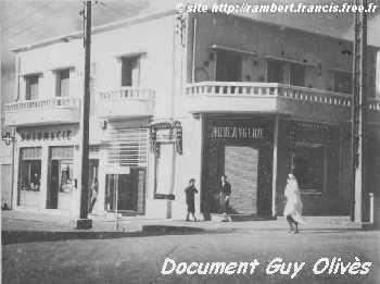 Ce magasin, bien que tout y fut correctement rangé, était un véritable capharnaüm, par la diversité des produits alimentaires (café Nizière "le roi des cafés", confitures Jeannette et Escla, pâtes alimentaires Ferrero ou Ricci, épices Spigol, boissons gazeuses, limonade ou "gazouze" et le légendaire Sélecto d'Hamoud Boualem, yaourts ou yoghourts Sainte-Marie, fabriqués à Bouzaréah et vendus, à la pièce, en pots de verres consignés) qui côtoyaient des articles des plus variés, allant des cigarettes Bastos, Globe ou Job, aux pelotes de laine et aux articles de mercerie. De part et d'autre de la petite entrée il y avait deux vitrines exiguës, domaine réservé de madame NADAL qui, au moment de la Fête des Mères, disposait élégamment, dans celle de droite, une multitude de menus objets destinés à nous inciter à y investir nos modestes économies : petits miroirs au cadre de plastique coloré, tubes de rouge Baiser ("le seul qui permet le baiser"), petits napperons brodés, vases miniatures en porcelaines, bonbonnières et les inévitables coffrets de flacons violets de parfum Soir de Paris de Bourjois (avec un "j" comme joie), le summum du luxe en raison de leur prix élevé. |