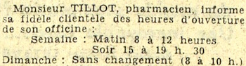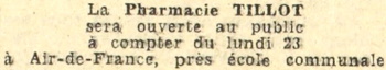 de l'ouverture de la première pharmacie Tillot le 23 octobre