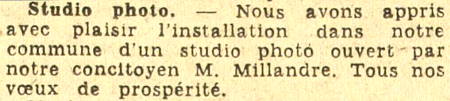 de l'installation d'un studio photo ouvert par M. Milandre à