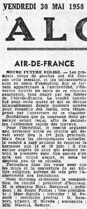 à accueillir la future première église d'Air de France