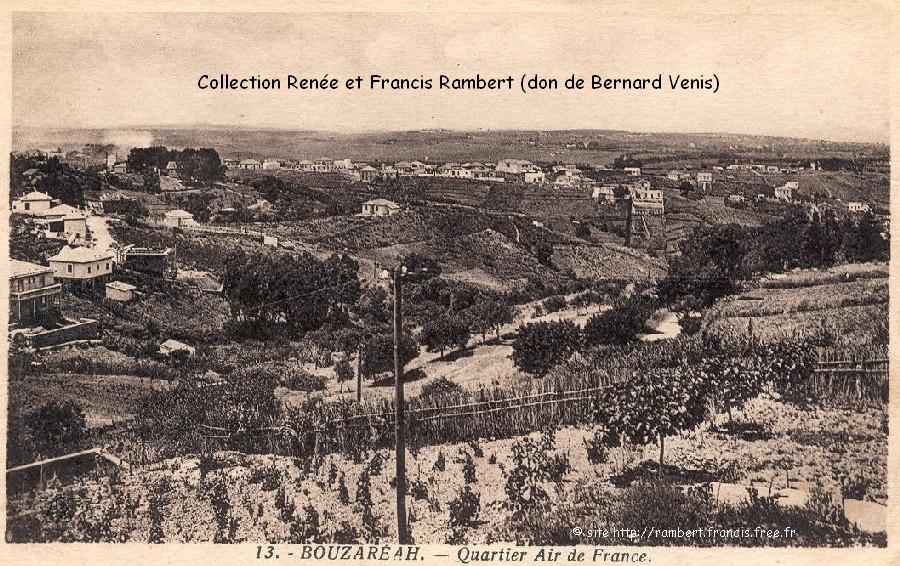 La légende était "Bouzaréah - Quartier Air de France". Et j'ai acquis une autre carte postale (non datée) La légende est "Bouzaréah - Avenue de l'Ecole Normale et Air de France" Je suis incapable de localiser ces vues Merci à celles et ceux qui voudraient bien aider à localiser cet endroit en faisant appel à leur mémoire.