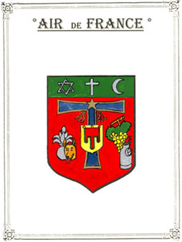 Air de France, village ou quartier de la banlieue d'Alger, de création récente, n'avait eu ni le temps ni l'occasion de se doter d'armoiries. Nous avons voulu combler ce manque en créant de toutes pièces un blason représentant ce lieu qui n'a jamais bénéficié du statut de commune.
