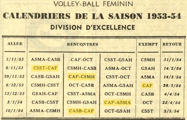 - Résultats du dimanche 22 octobre : CAF bat CSST par 3 sets