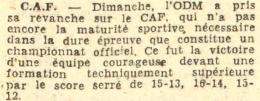 miére) bat CAF par 3 à 0, sur les scores de 15-2,