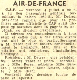 Le Club a engagé pour la saison 1950-51 une équipe
