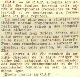 première du C.A.F en octobre 1951