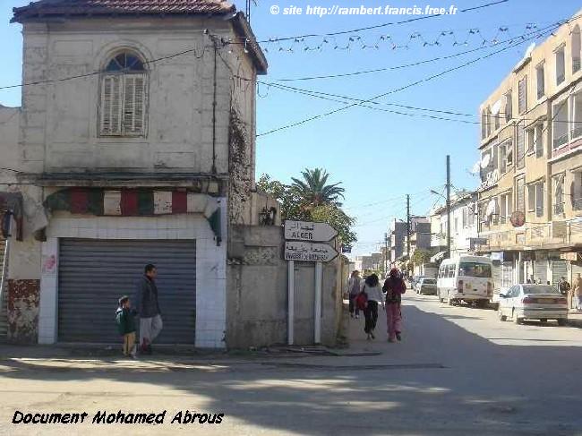et explications de Mohamed Abrous Quelques mois plus tard, la route de Bouzaréah et le "Carrefour du Moutchou". Le sens interdit à partir du carrefour du moutchou vers Alger, n'aura duré que l'espace d'un printemps. Effectivement les habitants de la rue du Valois se sont plaints, à cause du bruit, des tracasseries et des dangers que représentait une circulation dense dans une rue aussi étroite. Et la circulation a double sens a été rétablie comme avant sur la route de Bouzaréah. |