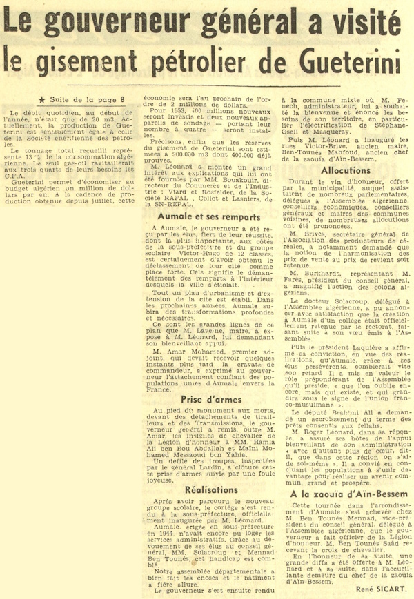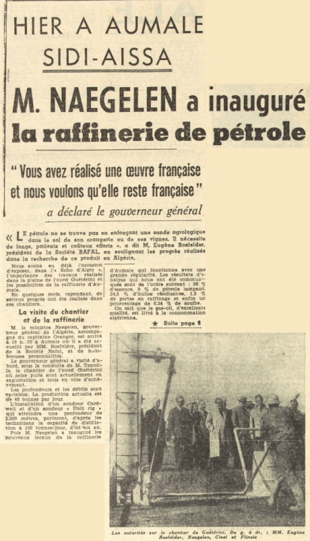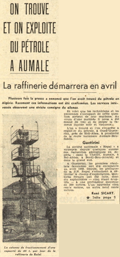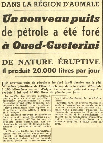 TROUVE ET ON EXPLOITE DU PÉTROLE A AUMALE