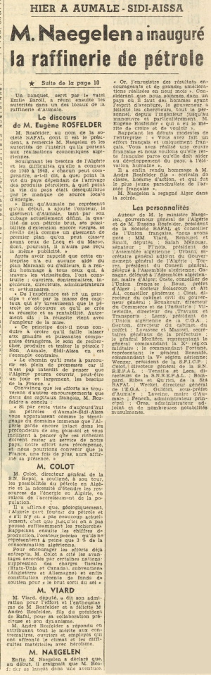 M. NAEGELEN a inauguré la raffinerie de pétrole
