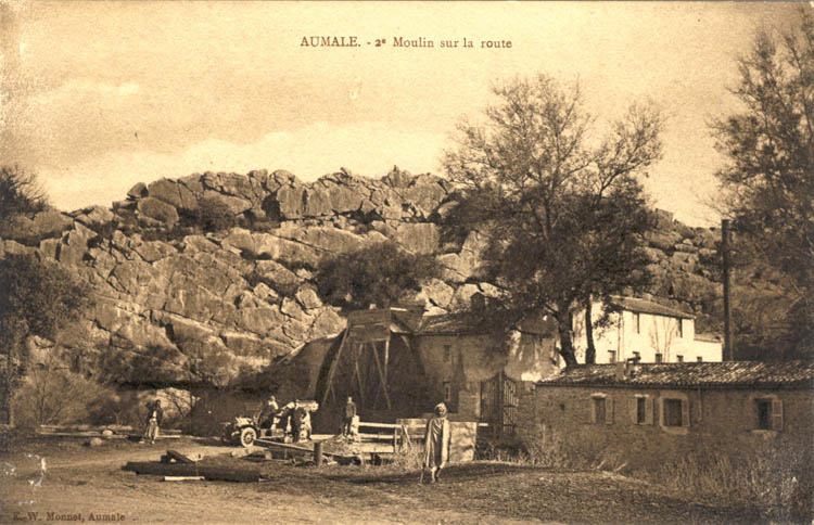 | "Il existe dans le périmètre de la commune de plein exercice, deux minoteries à vapeur, la plus importante est celle de Mme Vve MEYER au lieu dit "La Tranquillité" à la porte d'Alger, à 300 mètres des remparts ; l'autre, sise à deux kilomètres sur la route d'Alger, est celle de M. BRUNET ; au quatrième kilomètre sur la même route le moulin Jobert, construit pittoresquement contre la montagne et plus bas, au sixième kilomètre sur la route de Guelta-El-Zerga, le moulin Narbonne, ancien moulin Pouget. M. Arène est en train d'en installer une à l'intérieur de la ville." |