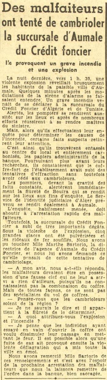 | Des cambrioleurs ont tenté de cambrioler la succursale d'Aumale du Crédit Foncier (Echo d'Alger du 2 juin 1948) | |