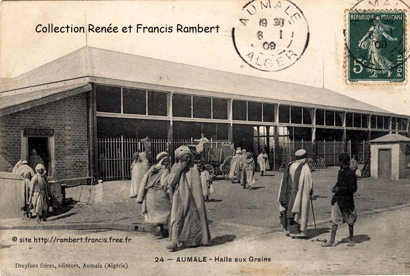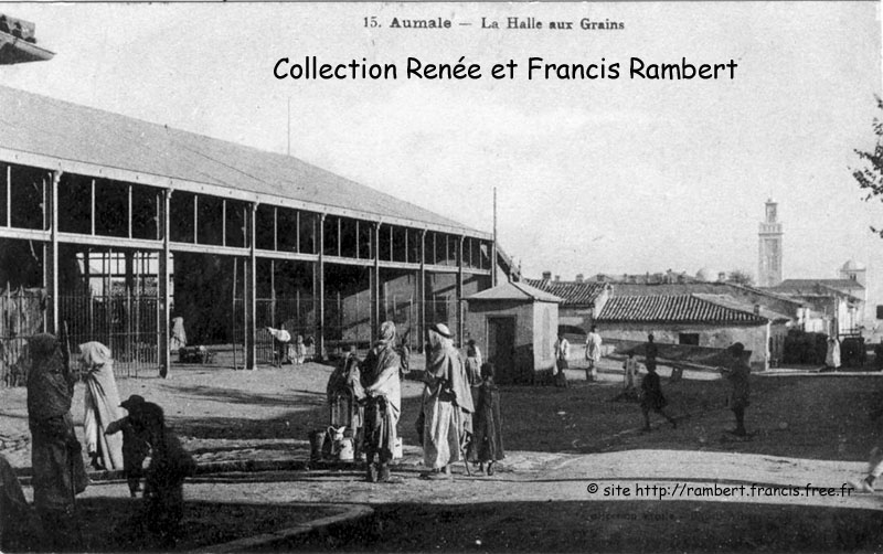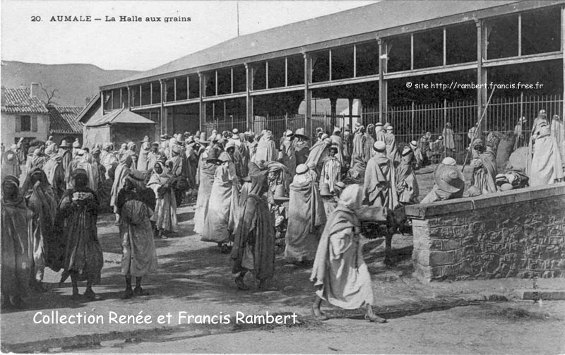 | "Deux halles en fer rendent au commerce de signalés services; celle du haut de la ville est fréquentée par les maraîchers, celle du bas beaucoup plus grandiose, est le rendez-vous des colons et des indigènes qui y écoulent leurs produits, surtout le dimanche, jour de marché." |