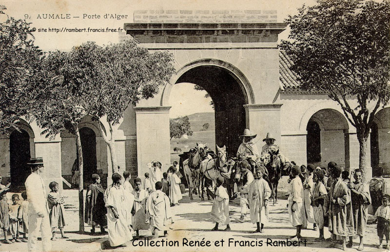 | "Lorsqu'on entre en ville par la porte du nord ou d'Alger, on est agréablement impressionné par la vue de deux belles constructions : à droite, l'école indigène ou Médersa; à gauche, la Mosquée ou Djemaa, toutes deux d'un élégant style mauresque." |