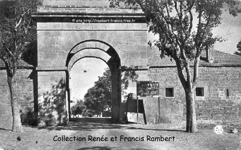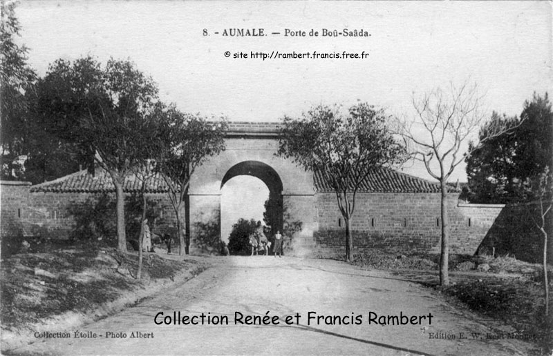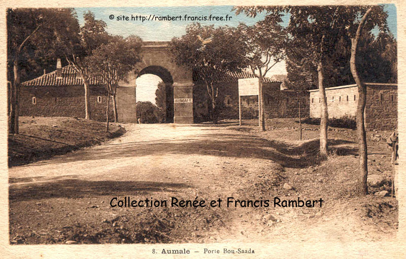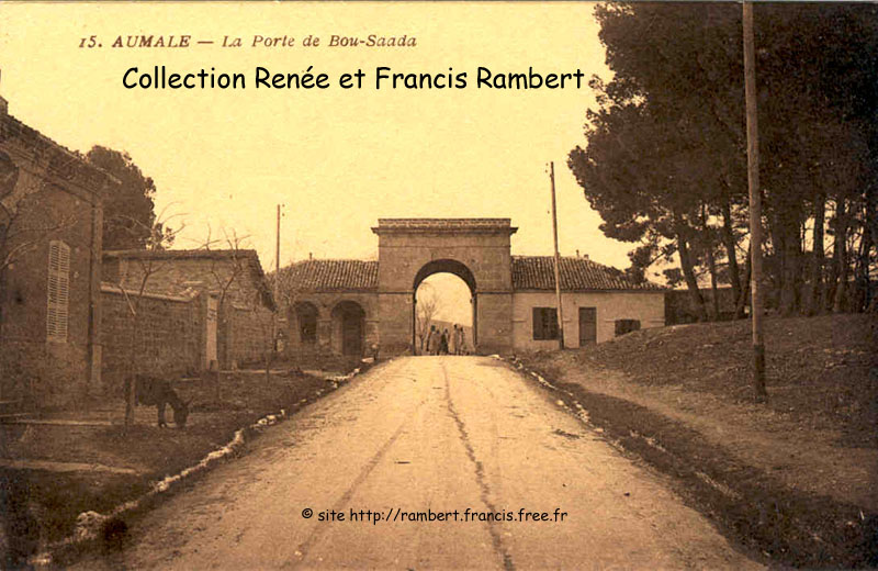 | "Cinq portes, dont quatre monumentales en pierres de taille, donnent accès à quatre chemins : la porte d'Alger ou du Nord, a été terminée en 1855 ; celle du Sud ou de Bou-Saâda, en 1856 ; celle de l'Est ou de Sétif, en 1857 et celle du Nord-Ouest ou de Médéa ainsi que l'abattoir en 1856." |