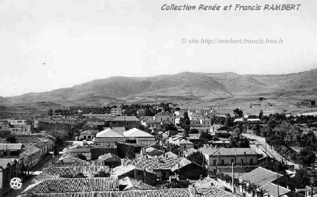| "Le centre orographique de la commune d'Aumale est le massif montagneux du Djebel Dirah qui s'étend de l'est à l'ouest sur une longueur d'environ 50 km avec une épaisseur moyenne de 10 km du nord au sud. Sa ligne de faîte passe à 8 ou 9 km au Sud d'Aumale, et c'est à hauteur de cette ville qu'elle atteint son point culminant à la côte 1.805 mètres." |