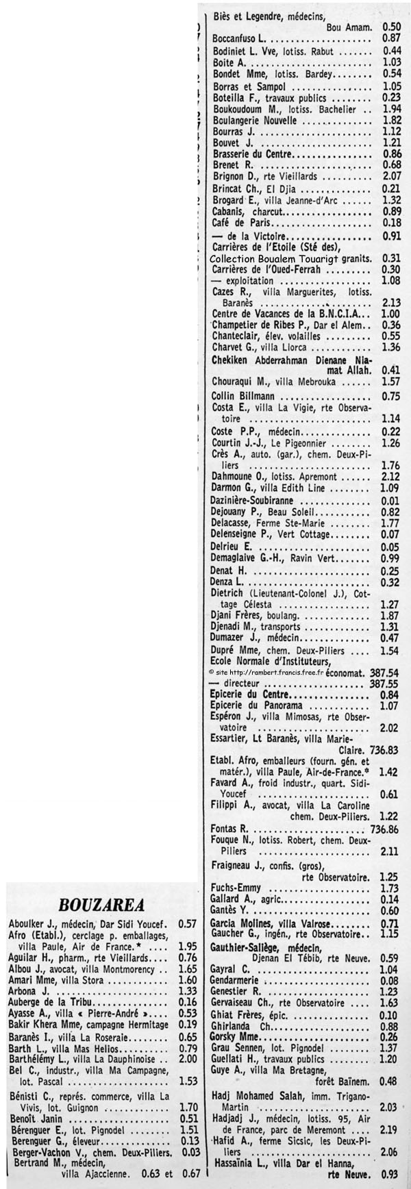 La page "BOUZARÉAH" de l'annuaire téléphonique de 1955