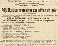 | L'Ecole de Filles | L'Ecole Communale de Filles | Adjudication pour l'grandissement de l'école de filles |