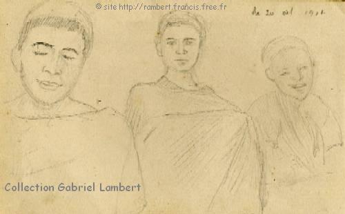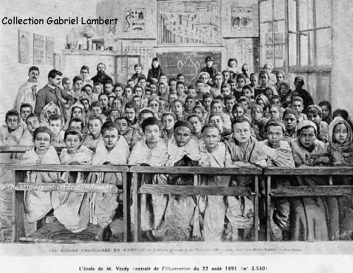 | A la sortie de l' École Normale, les sectionnaires devenaient généralement Directeurs d'Écoles Principales dans le bled. Cassien Lambert (ou Germaine Croisé, son épouse) nous ont laissé ces dessins, souvenirs de leurs élèves kabyles. |