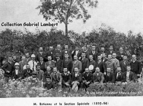 formation se faisait en trois ans 3 ans: - Première année "les tyrons" - Deuxième année "les profanes" - Troisième année "les vétérans" - et une quatrième année "les sectionnaires" de la section spéciale pour les instituteurs se destinant à l'enseignement des indigènes. |