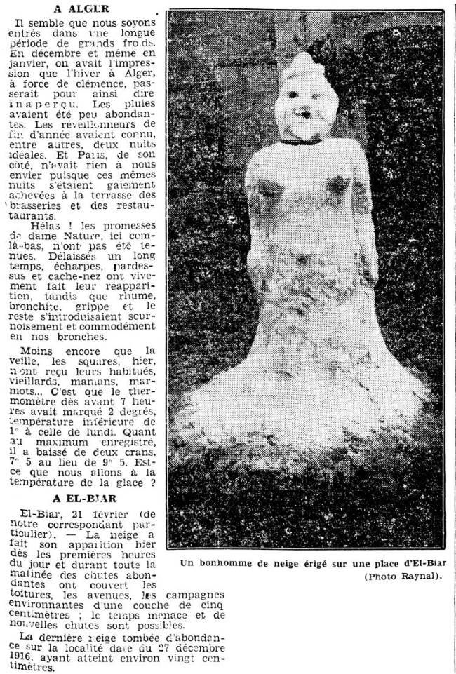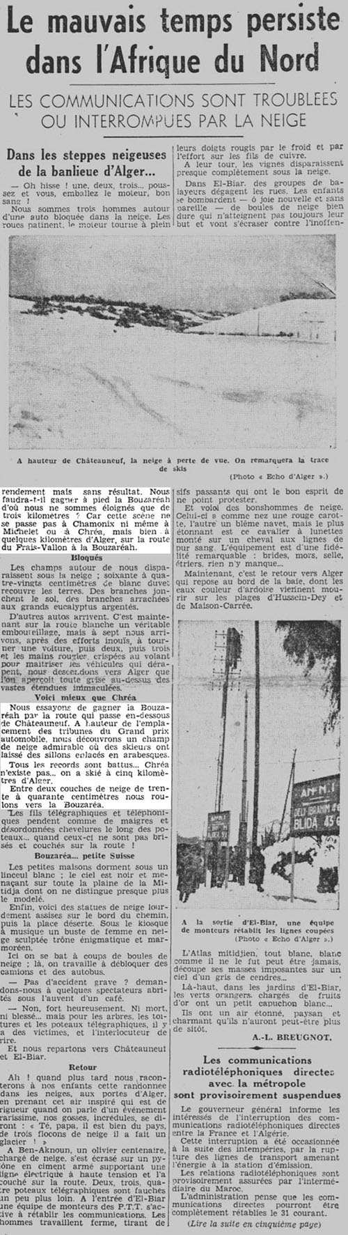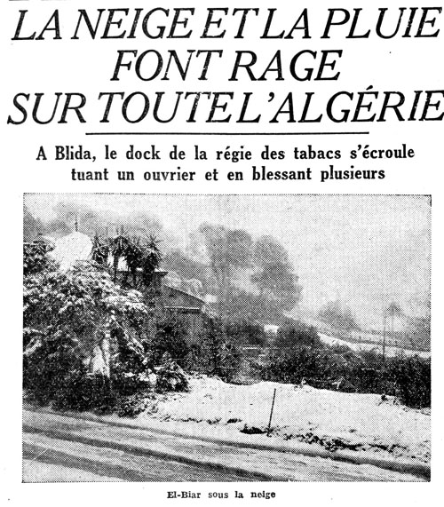 février 1934 : la neige dans la banlieue d'Alger Articles publiées dans l'Écho d'Alger du 22 février 1934 |