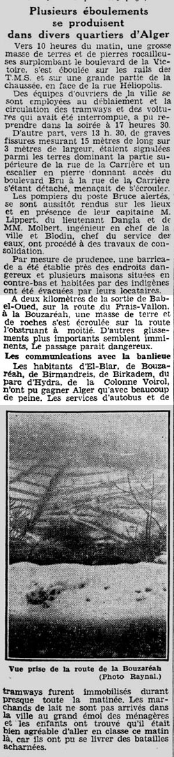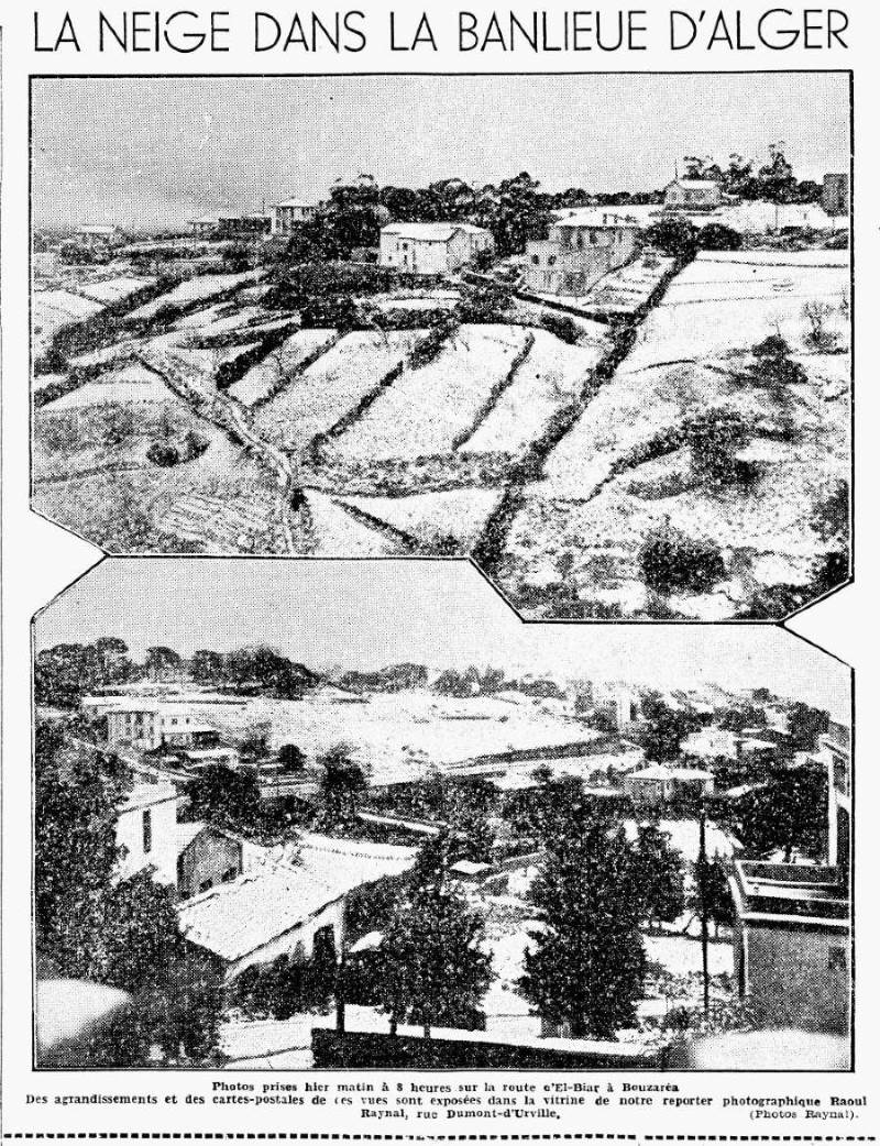 janvier 1935 : la neige sur Bouzaréah et sur la banlieue d'Alger Articles publiées dans l'Écho d'Alger du 29 janvier 1935 |