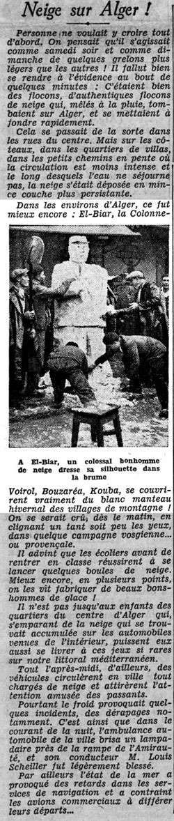janvier 1960 : la neige à Bouzaréah articles publiées dans l'Écho d'Alger du 18 janvier 1960 |