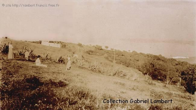| Au début des années 1900, la famille Lambert-Croisé sur la "colline des Franciscains" : la route de l'Observatoire, le Bordj Polignac et la baie d'Alger |