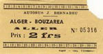 Les Guides Bleus "Algérie-Tunisie" (1950) : Petite ville de 8.877 hab., à 400 m. d'alt. C'est le véritable *belvédère des environs d'Alger. Malheureusement, le point culminant du massif est maintenant occupé par un fort dont on ne peut approcher. Pour jouir de la vue, on se rendra d'abord, en prenant à dr. sur la place du village, au (1 k.E.) cimetière européen (vue sur Alger et sa baie) ; puis revenant à la place du village et prenant à g., on gagnera (1 k. O.) le village indigène (vue sur le Sahel) avec ses koubbas ombragées de palmiers nains et sa petite mosquée de Sidi Noumane. |