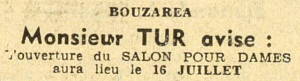 du Salon de Coiffure pour Dames de Monsieur Tur (n°3 du plan) Echo d'Alger du 13 juillet 1946 |