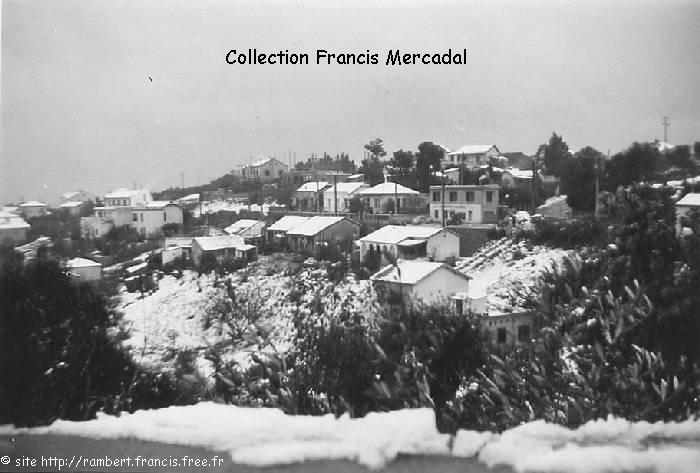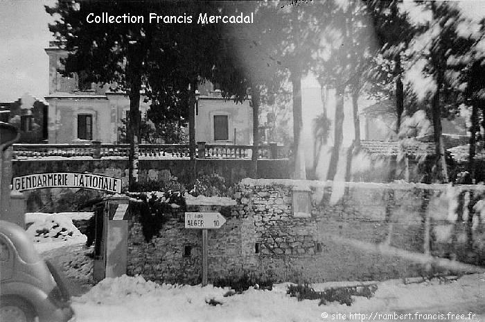 | La Gendarmerie de Bouzaréah (repère E sur la carte) sous la neige (et la Route Neuve vers le Frais Vallon "El-Biar 5 - Alger 10" était coupée...) |
