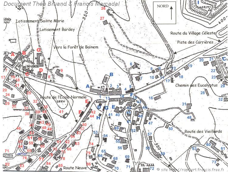 55. 56. 57. 58. 59. Dahimène 60. 61. Blanquert (Les Petites Galeries-Presse) 62. 63. 64. Bondet 65. Mlle Brogard (villa Jeanne d'Arc) 66. 71. Nielli (villa Sainte-Marie) 72. Paris 73. 74. 75. 76. Guellati (T.P..) 77. 78. Carotti (éleveur) 79. 80. 81. 82. Campagne Guellati 83 84. Guillemin, Karabaghli (villa Mon Repos) 85. 86. |